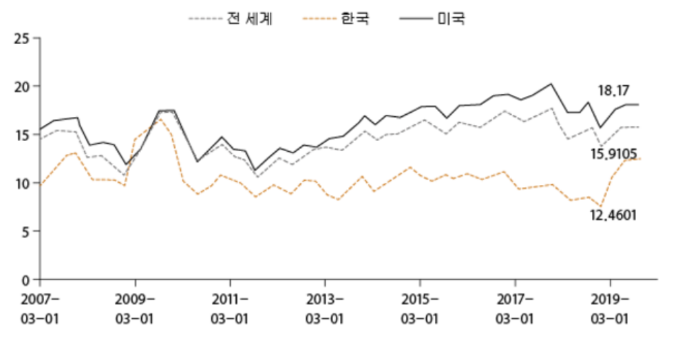 한국 주식시장은 아직도 전 세계에서 가장 저평가된 시장 중 하나다. 기업의 수익성에 대한 시장의 평가를 의마하는 주가수익비율(PER)은 한국의 경우 12배 수준으로 전 세계 평균인 16배보다 낮다.
