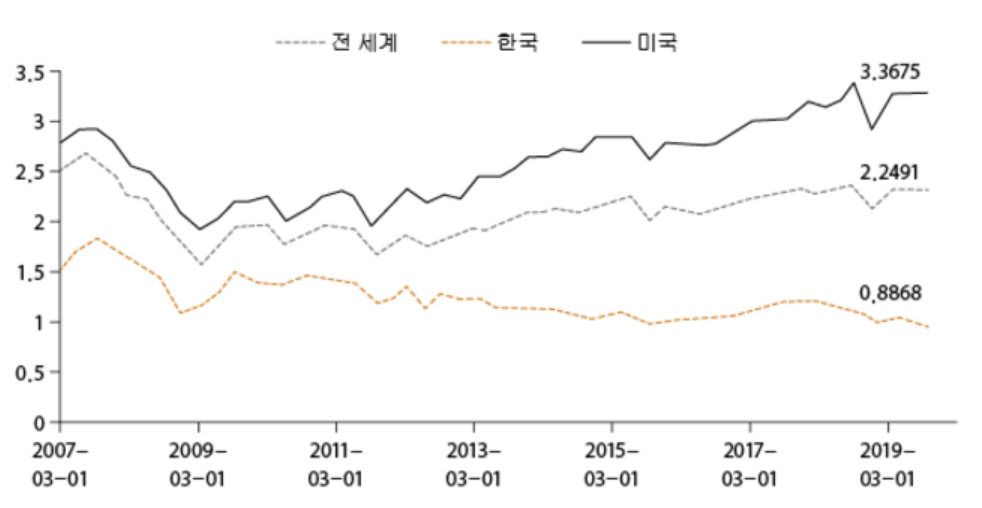 자산가치를 평가하는 주가순자산비율(PBR)도 0.8배 수준인데, 이는 전 세계 평균인 2.2배의 절반에도 미치지 못하는 수치이다.