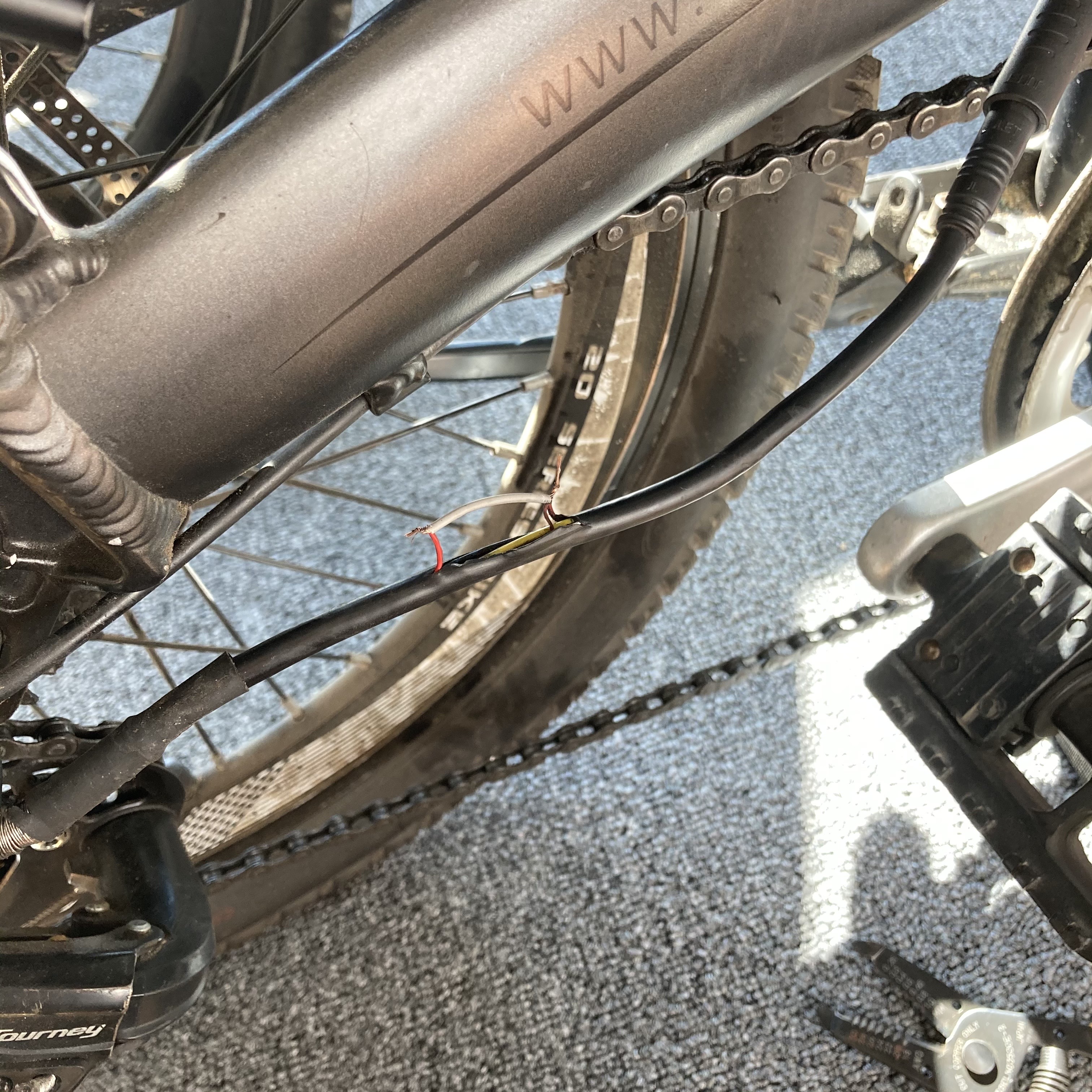 일단 회사동료 중 한명이 G650을 타고 있어서 멀쩡한 자전거의 케이블을 제 자전거에 연결해서 모터가 동작하는지 확인하고자 했습니다. 그래서 일단 모터 신호-전원 케이블을 분리해봤는데, 드디어 원인을 찾게 되었네요.