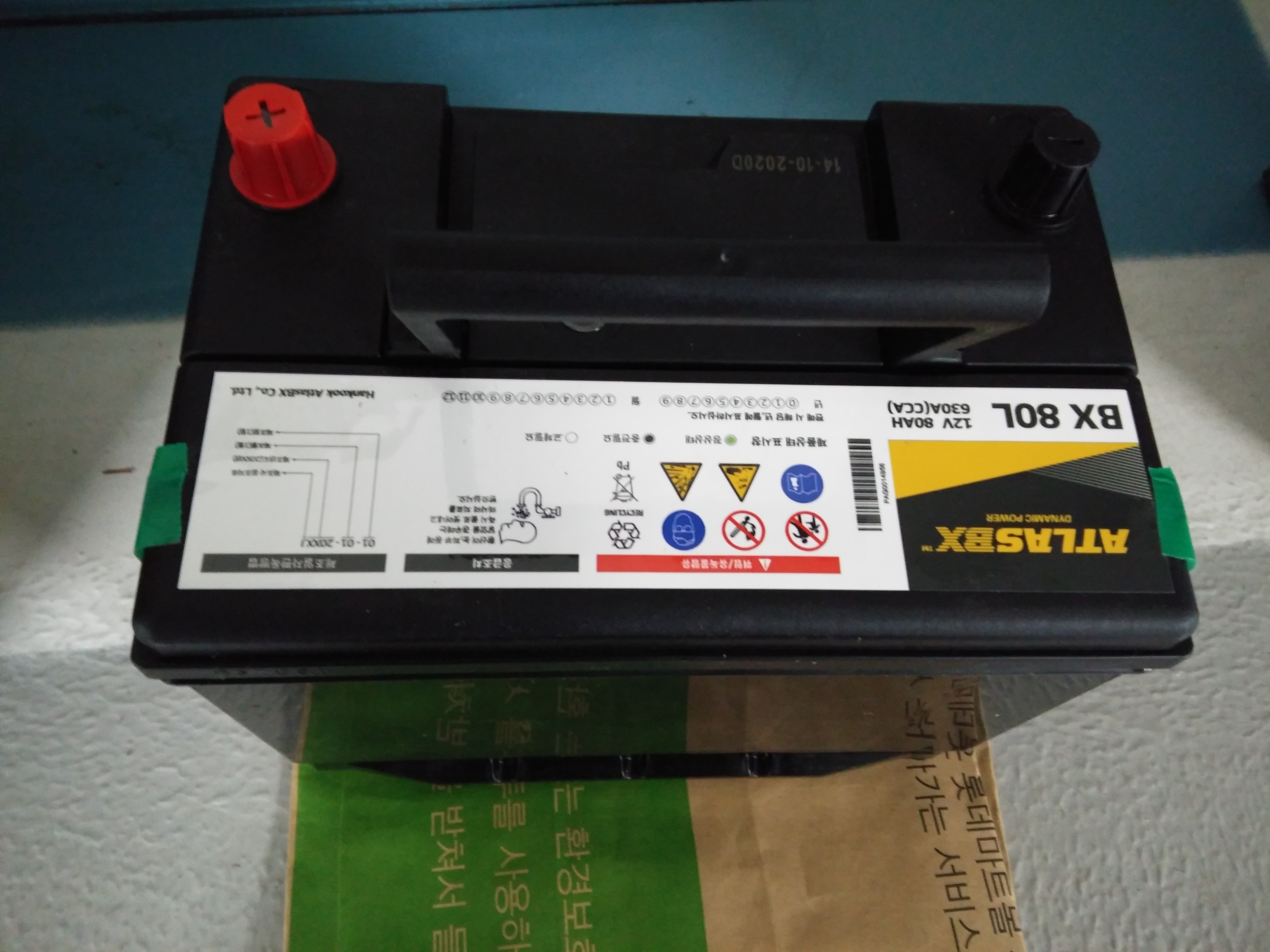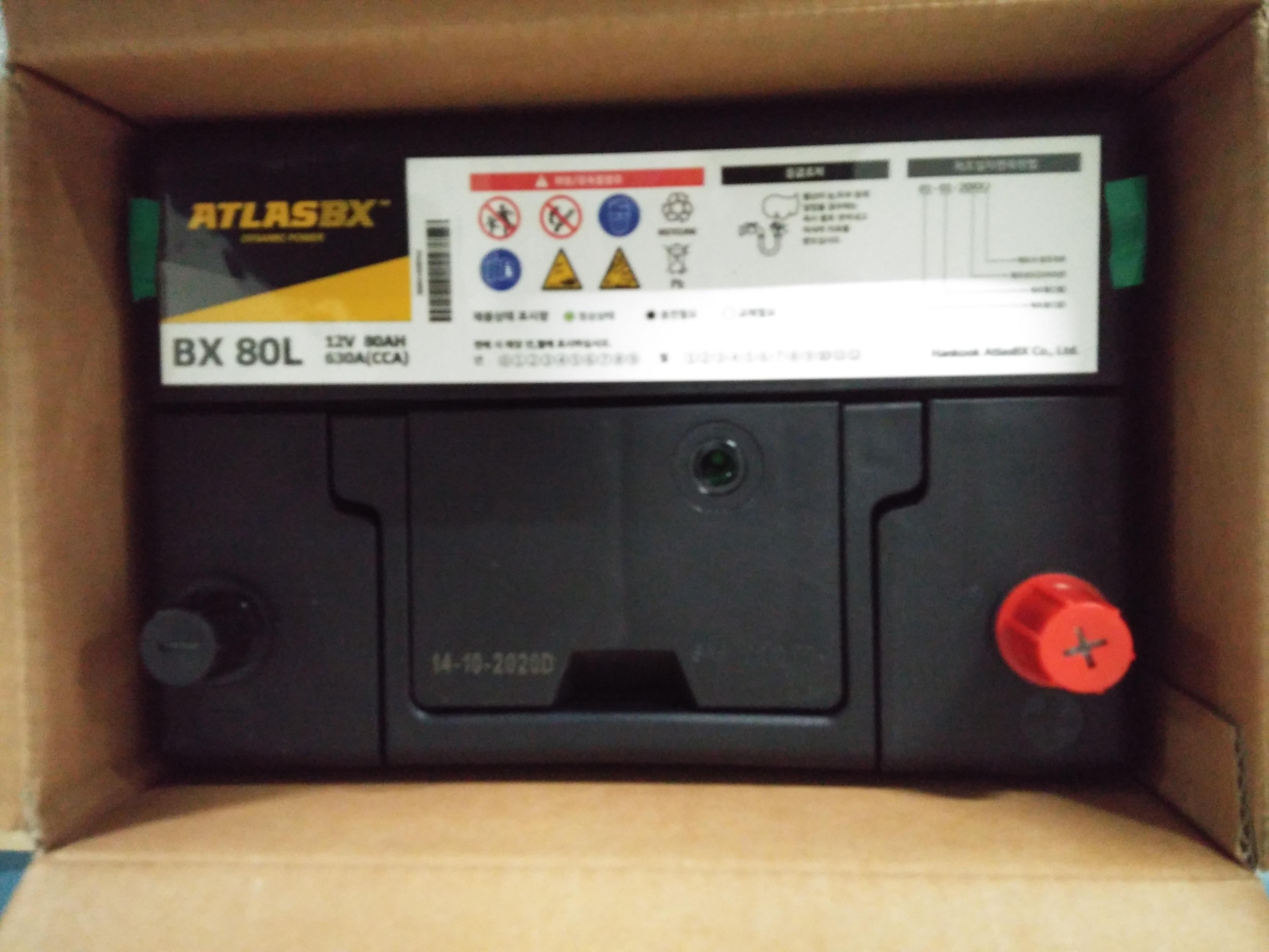 그림 5 : 새롭게 배송 온 박스를 열면 보이는 신규 배터리가 가지런히 놓여 있는 모습(숫자 80은 용량을 나타내는 80AH의 의미이고 숫자 뒤에 붙어 있는 알파벳 L은 +단자가 왼쪽(Left)에 있다는 의미)이다. 참고로 순정상태로 장착되어 있는 배터리는 60AH 용량인데, 대부분 80AH 향상하여 장착하는 듯 하다.