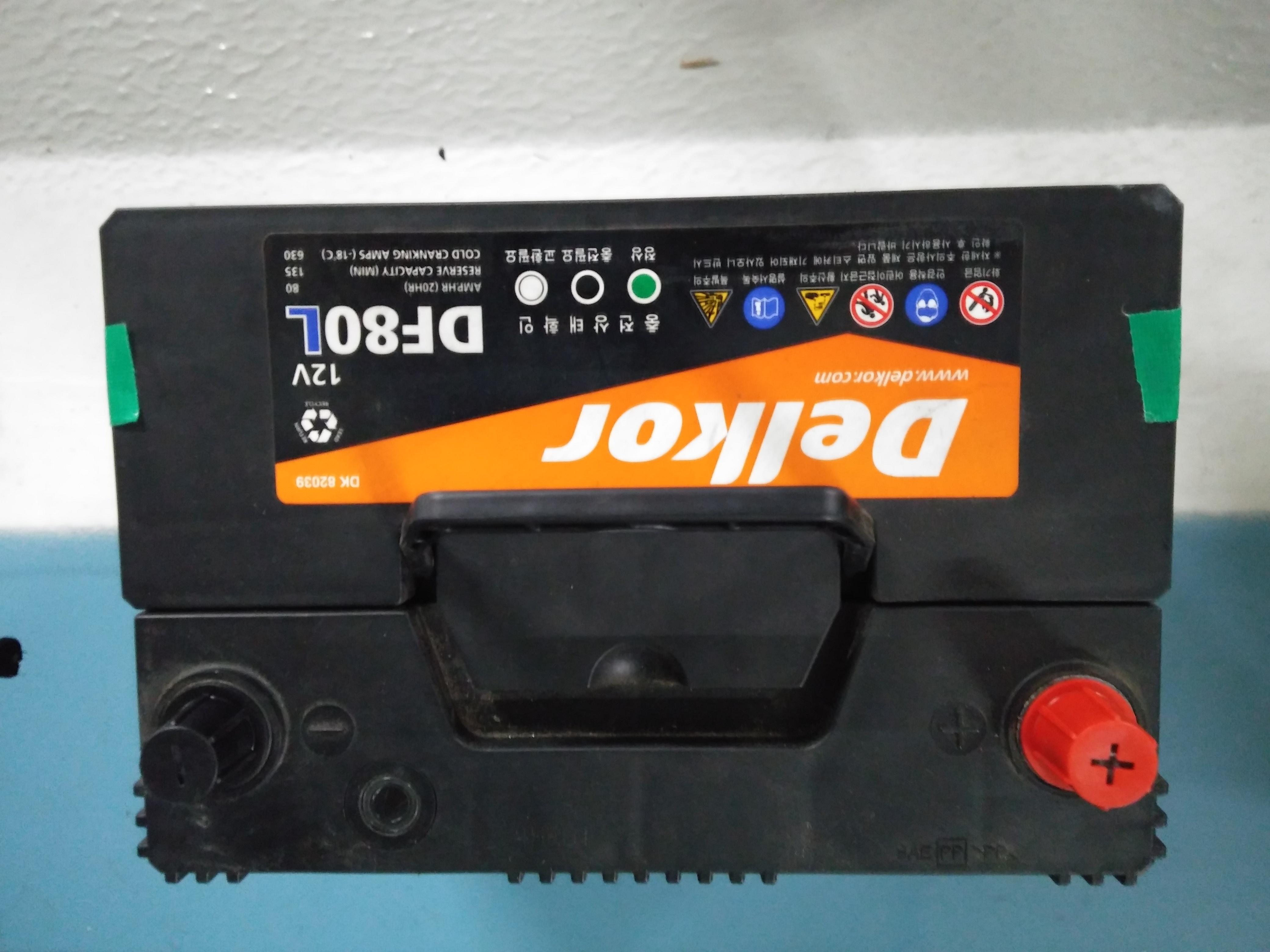 그림 4 : 기존에 4년 동안 봉사한 옛날 배터리가 장착된 모습, 왼쪽에 + 단자와 오른쪽에 - 단자가 있는 모습