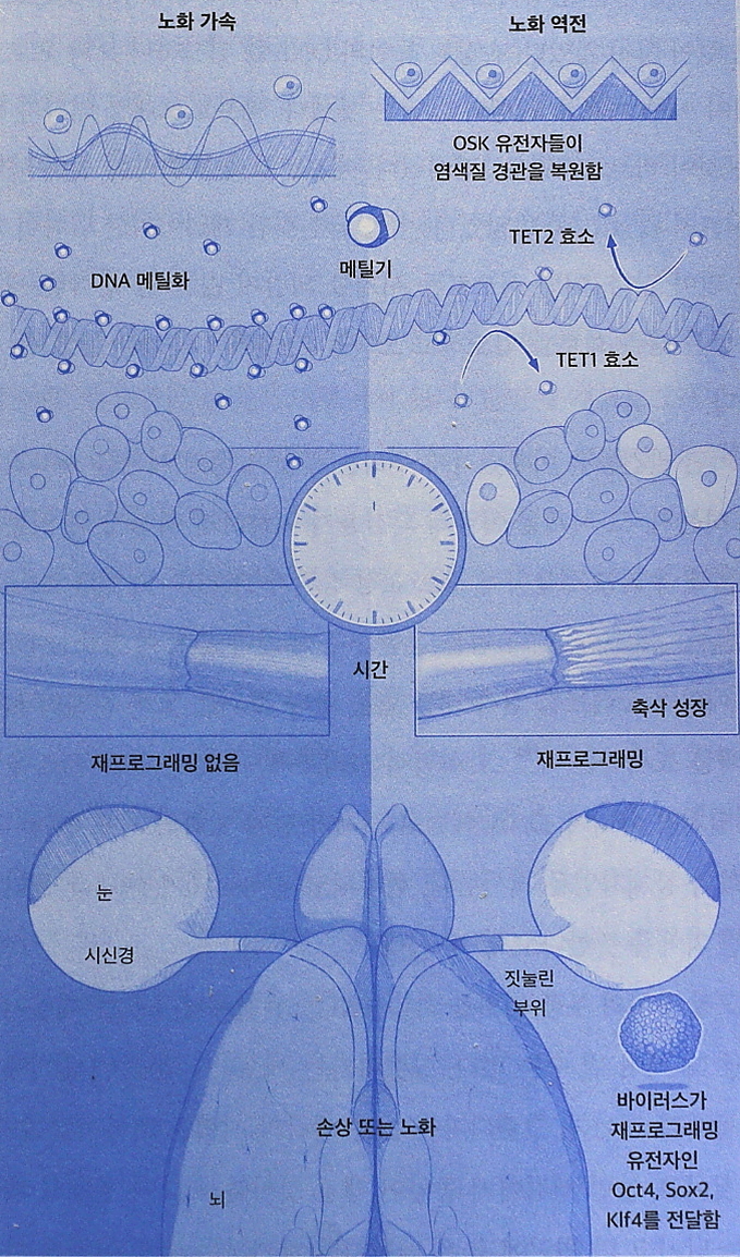 40억 년 전으로 거슬러 올라가 태초의 생명체가 끔찍한 지구 환경에서 살아남기 위해 갖추었던, 그리하여 진화 과정에서 오늘날 인간을 비롯한 모든 생물에게 발전된 판본으로 유전되어 온 ‘생존 회로’가 노화의 유일한 근본 원인임을 밝혀낸다.