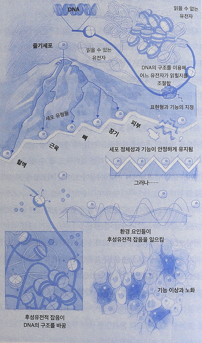유전체가 컴퓨터라면 후성유전체는 소프트웨어에 해당한다. 새로 분열된 세포가 어떤 종류의 세포롤 발달할지 지시하고, 뇌의 뉴런과 특정한 면역세포처럼 한 종류의 세포가 길게는 수십 년 동안 정체성을 유지하도록 해 준다.