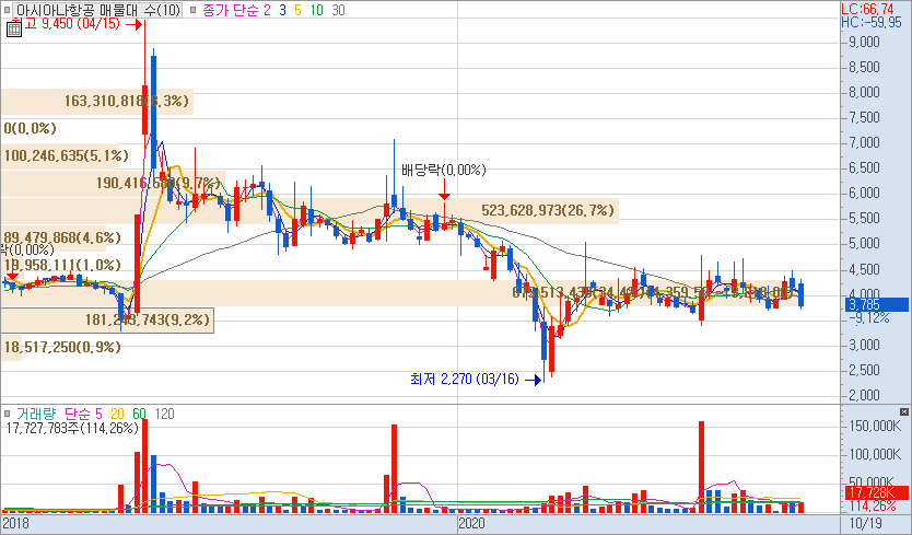아시아나 항공 무상감자 전후 차트가 달라져 있어서 이를 살펴 보기로 했다.