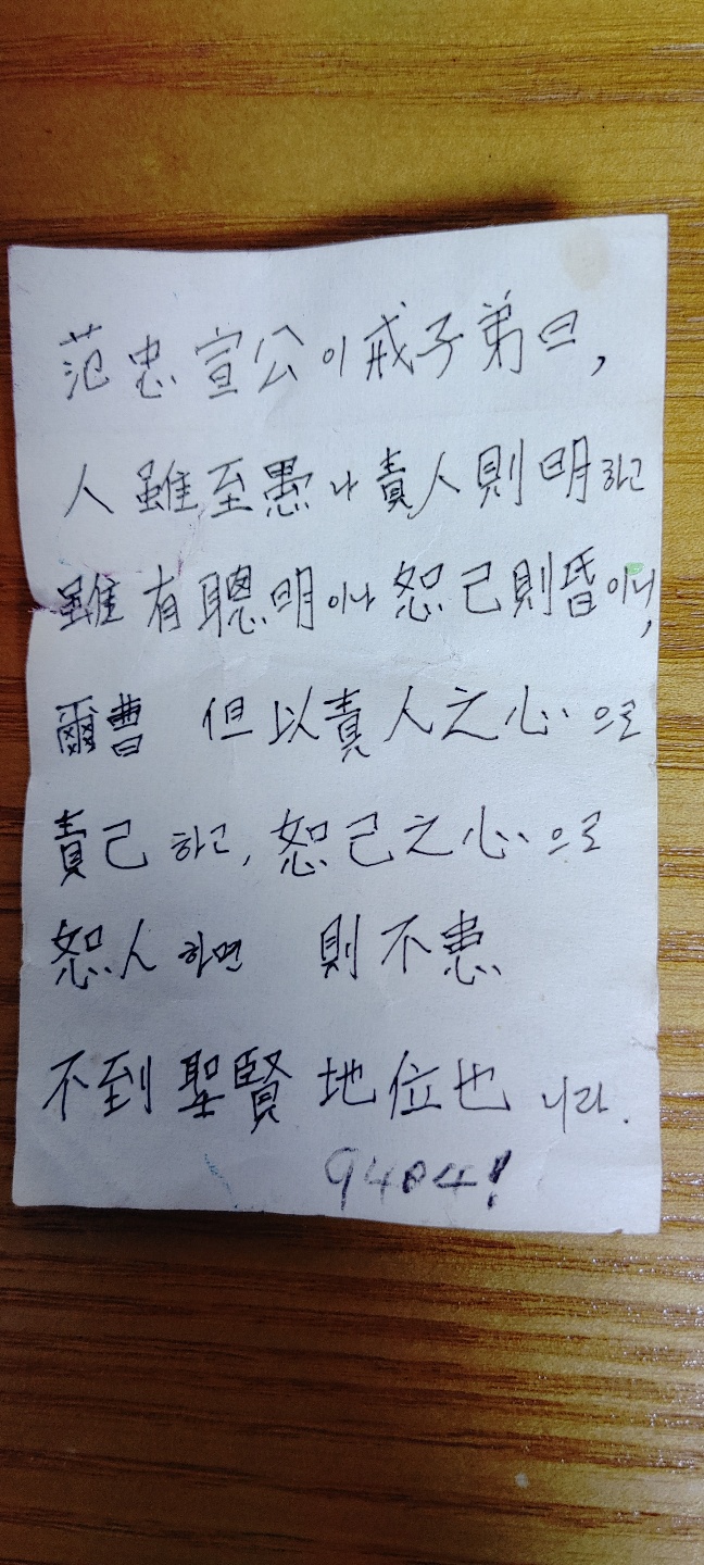 범충선공이 자제를 경계한 가르침입니다.
