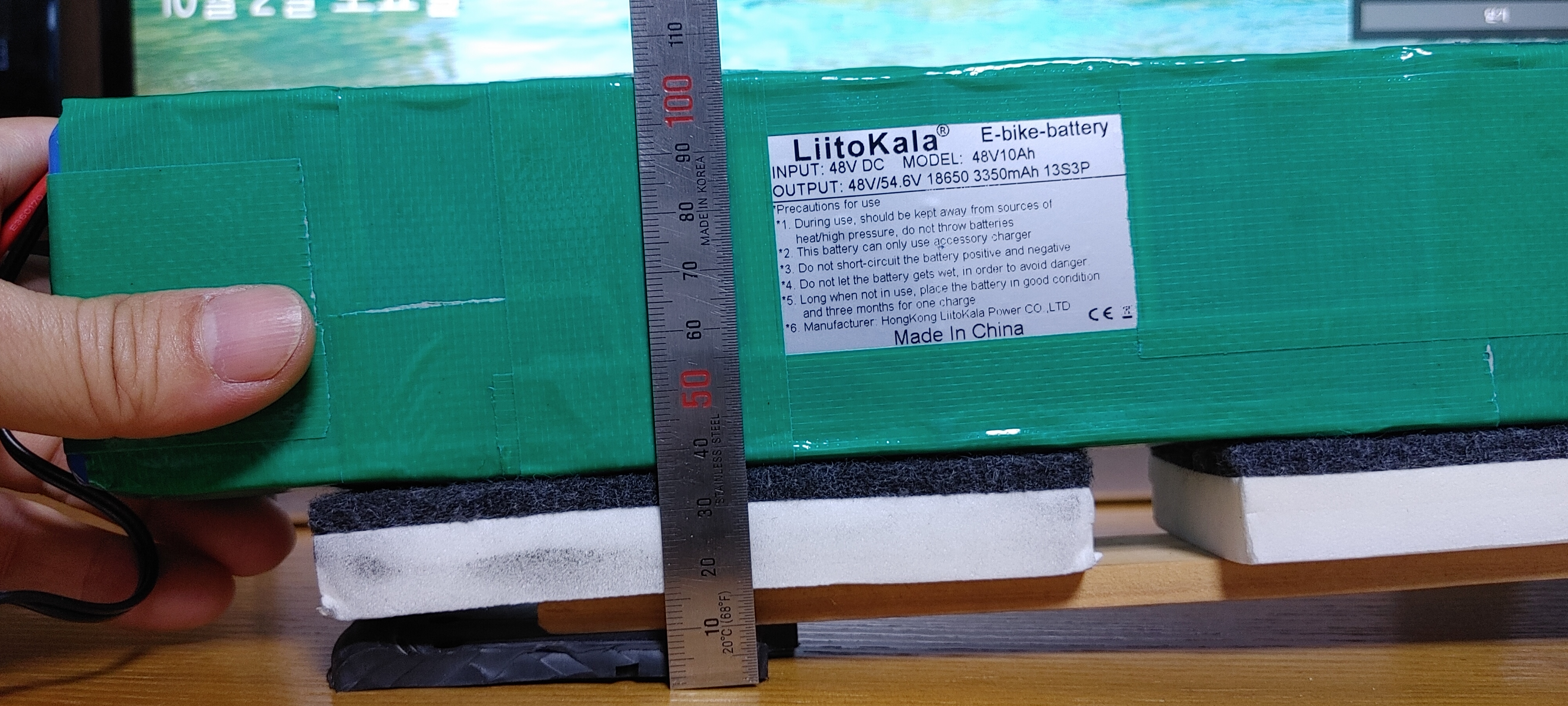이번에 신규로 구매한 추가 48V 10Ah 배터리인 리토칼라 배터리가 기존에 사용하던 예전 배터리의 폭에 비해 3cm 정도 작기 때문에 이를 고정하는 것이 필요합니다. 주변에 눈에 띄는 이것저것을 가지고 고정지그를 제작한 내용을 공유합니다.