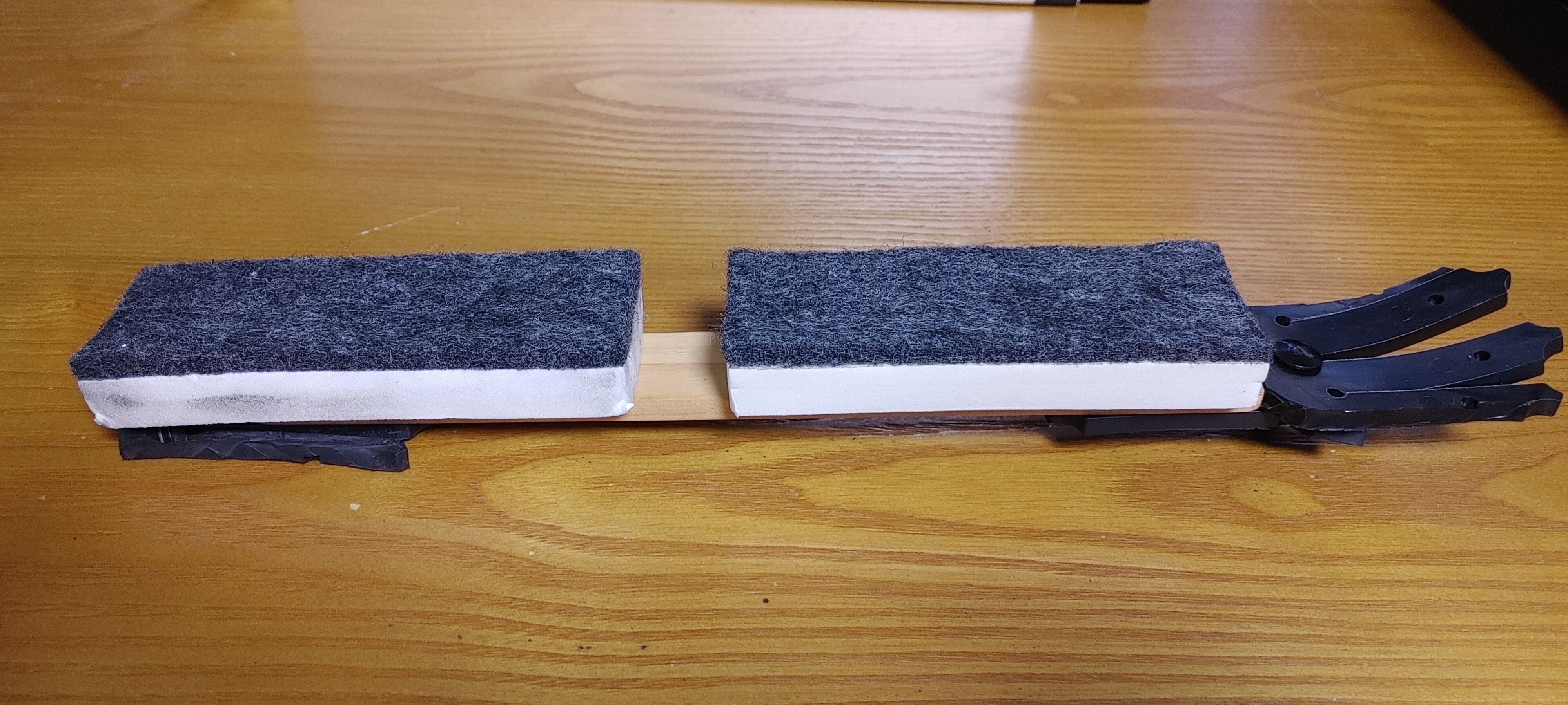 준비물 : 화이트 보드 지우개 2개, 나무 작대기 1개, 고무 더미 2개, 나사못, 본드