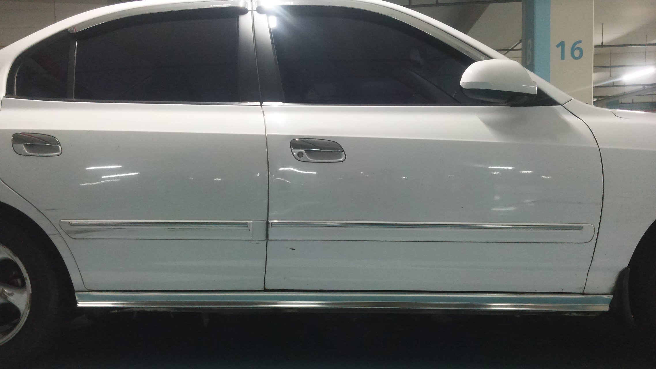 사진에서 보시는 바와 같이 앞쪽 펜더 앞바퀴 부근에 차가 부식으로 썩어서 엉망이 되었네요. 상세한 이유를 분석해 봤더니 가뜩이나 부식에 취약한 현대자동차인데 부식이 발생한 앞쪽 휀다, 그 안에 물 먹은 낙엽, 먼지, 등등이 꽉 차 있네요. 일단은 내부에 흙과 낙엽 등을 빼내야 합니다. 그래야 추가적으로 부식이 진행되지 않습니다. 그리고 사진에서 보이는 사이드 스커트를 장착합니다. 장착하면 아래 사진과 같이 깜쪽같이 해결되었습니다. 그리고 외관이 전혀 문제가 없는 차로 변신하게 되었습니다. 하하하~