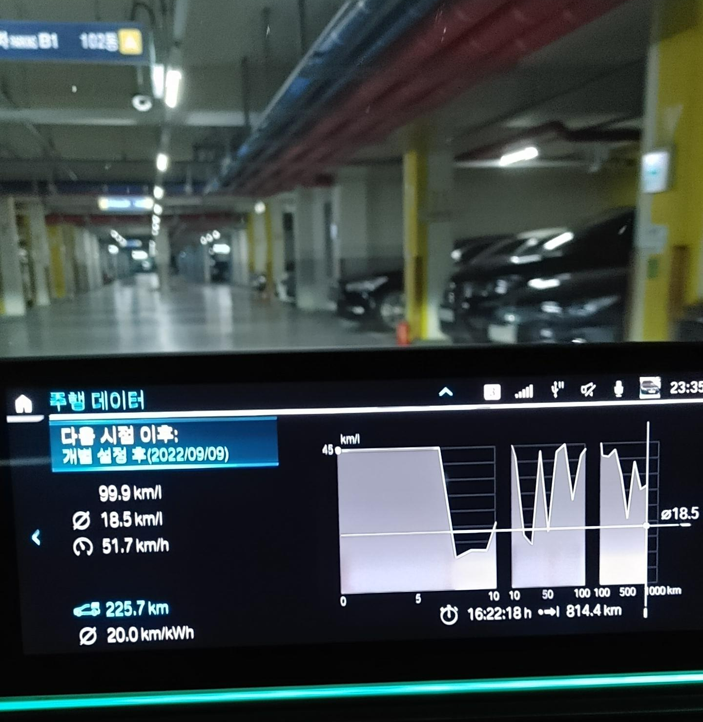 트립 연비 = 18.5 km/l(배터리 약 25% 남음)