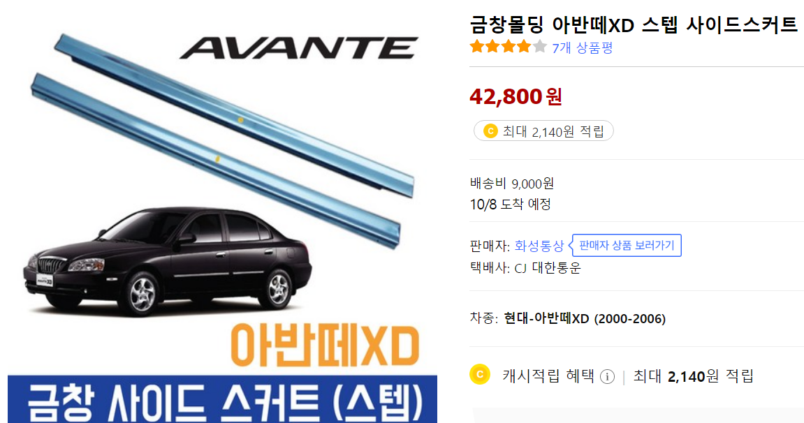금창몰딩 아반떼XD 스텝 사이드스커트