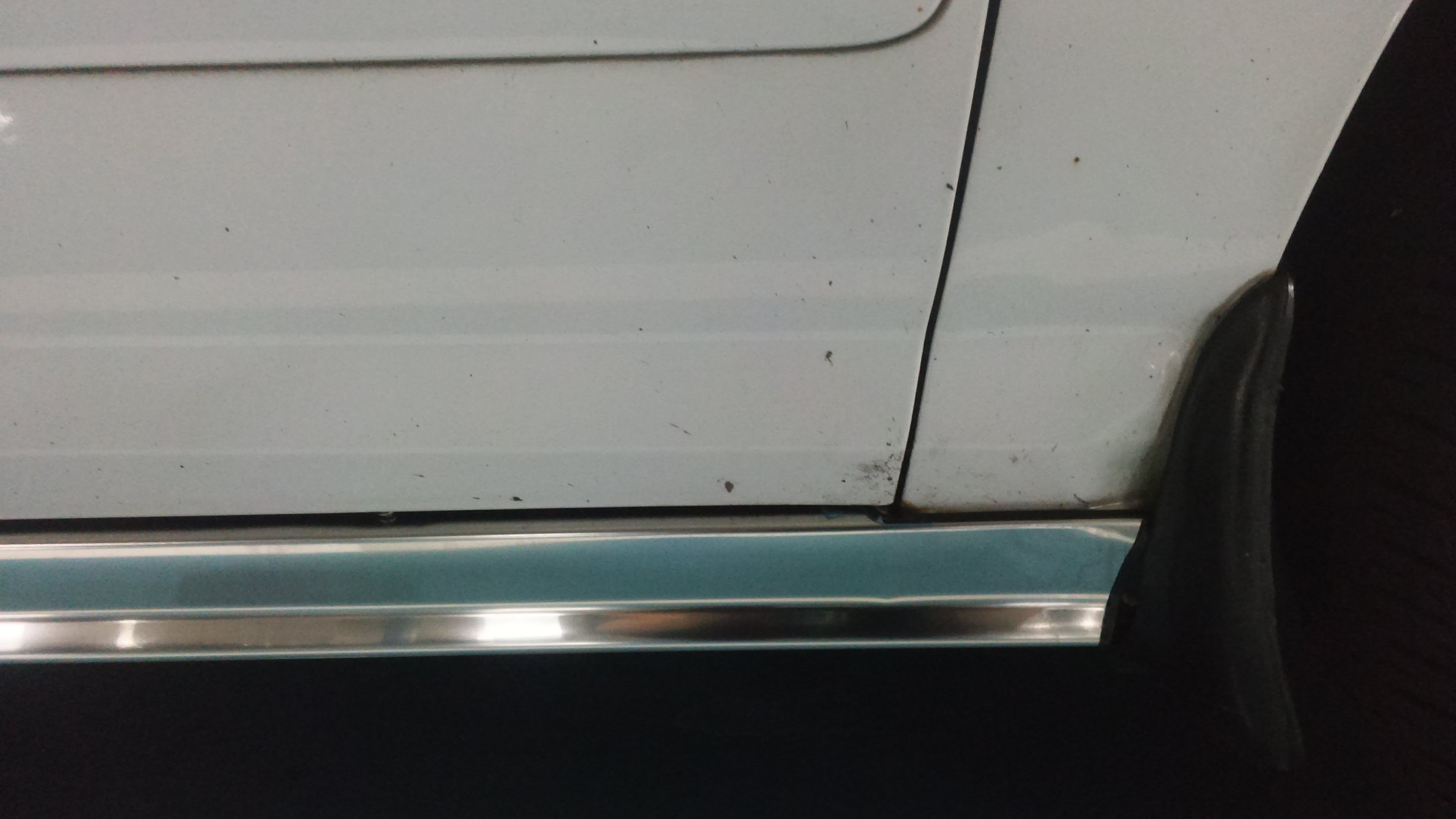사진에서 보시는 바와 같이 앞쪽 펜더 앞바퀴 부근에 차가 부식으로 썩어서 엉망이 되었네요. 상세한 이유를 분석해 봤더니 가뜩이나 부식에 취약한 현대자동차인데 부식이 발생한 앞쪽 휀다, 그 안에 물 먹은 낙엽, 먼지, 등등이 꽉 차 있네요. 일단은 내부에 흙과 낙엽 등을 빼내야 합니다. 그래야 추가적으로 부식이 진행되지 않습니다. 그리고 사진에서 보이는 사이드 스커트를 장착합니다. 장착하면 아래 사진과 같이 깜쪽같이 해결되었습니다. 그리고 외관이 전혀 문제가 없는 차로 변신하게 되었습니다. 하하하~