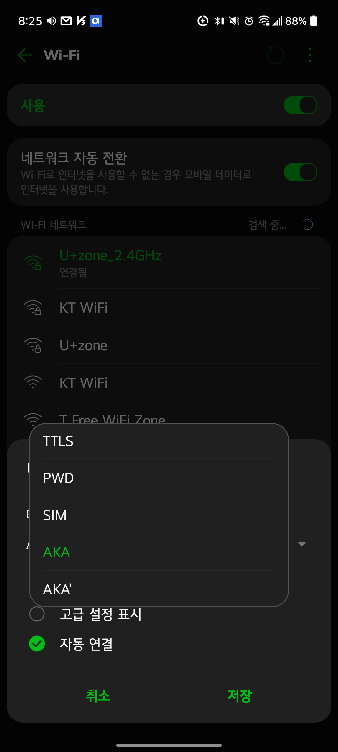 2. EAP방식을 AKA로 변경한다.