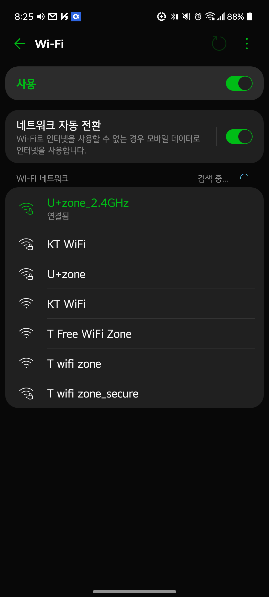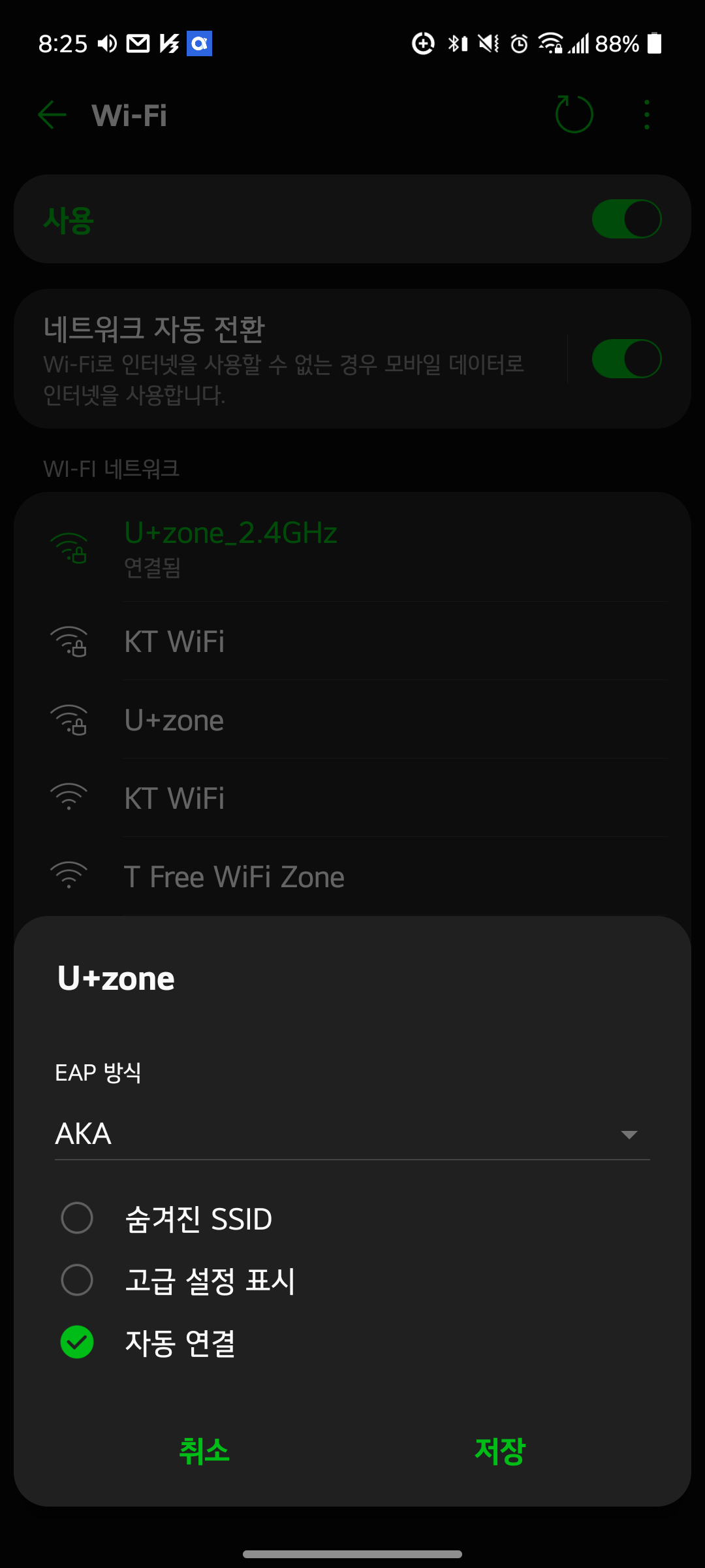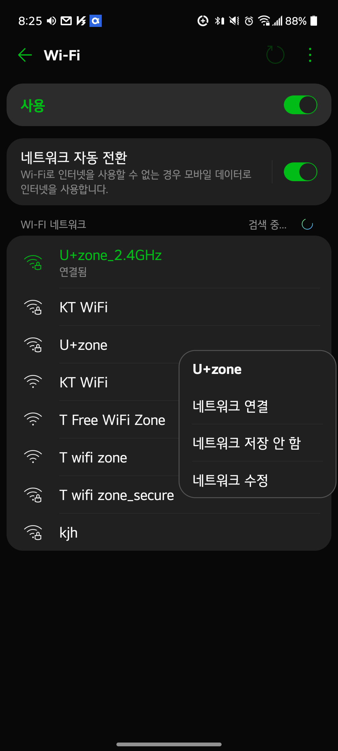 1. U+ 와이파이 신호에 눌러 '네트워크 수정" 으로
