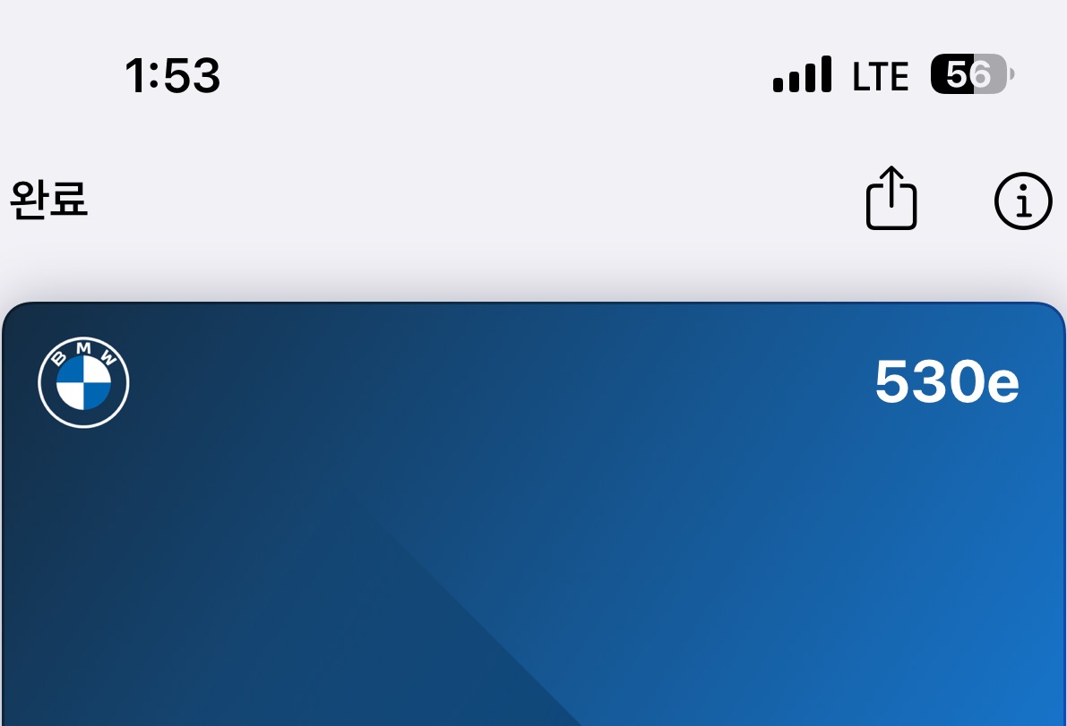 BMW 530e 는 키가 총 4개 입니다. 물리키 2개, 카드키 1개, 그리고 오늘 소개할 디지털 키가 있습니다.