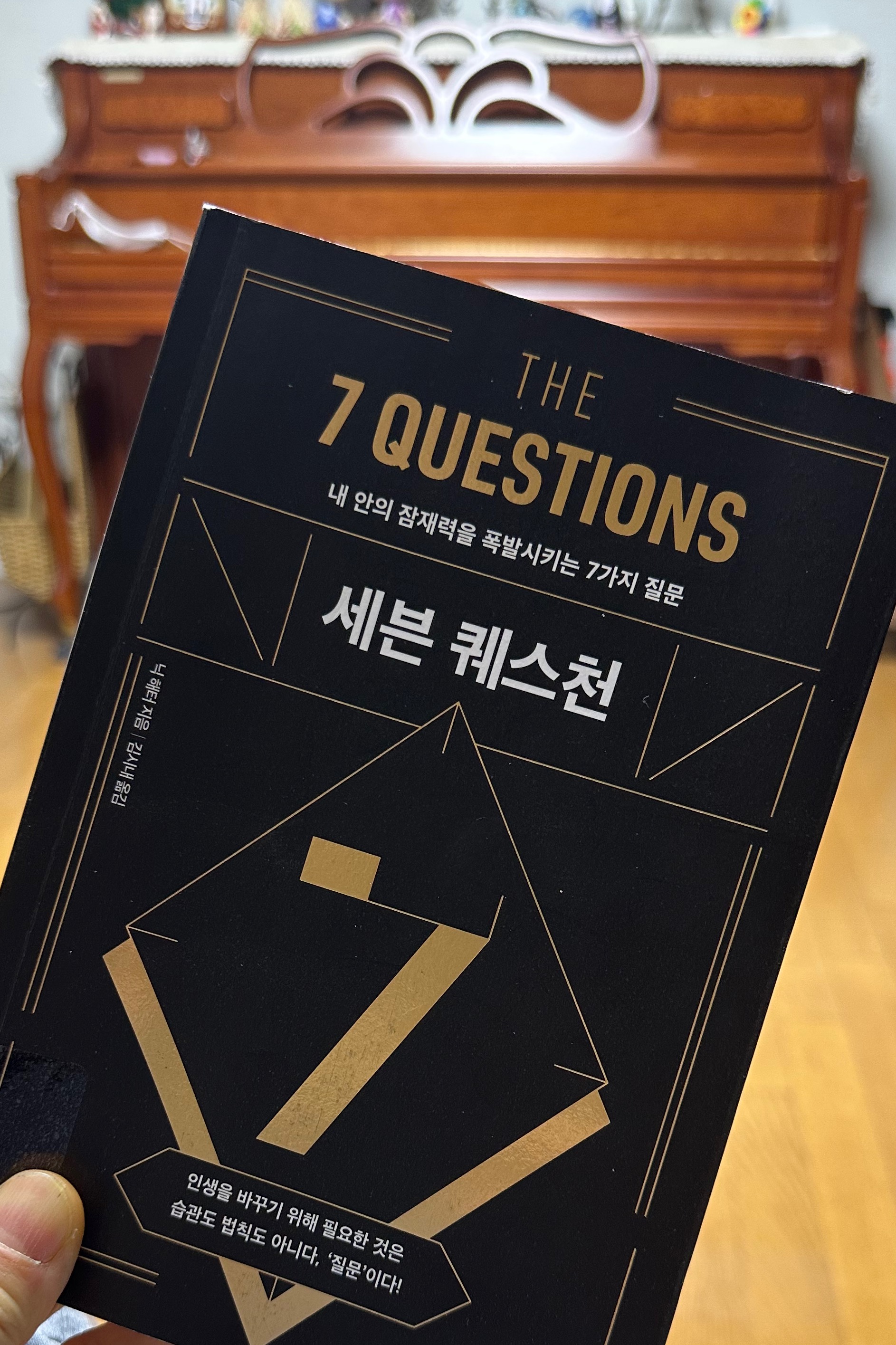 올해 두 번째 책, 세븐 퀘스천 입니다. 일곱 가지 질문입니다. 책을 읽은 뒤 효과는 단 몇 문장, 몇 소절이라도 몸, 마음, 머리에 남게 되면 성공한 책이라는 평소 생각입니다.