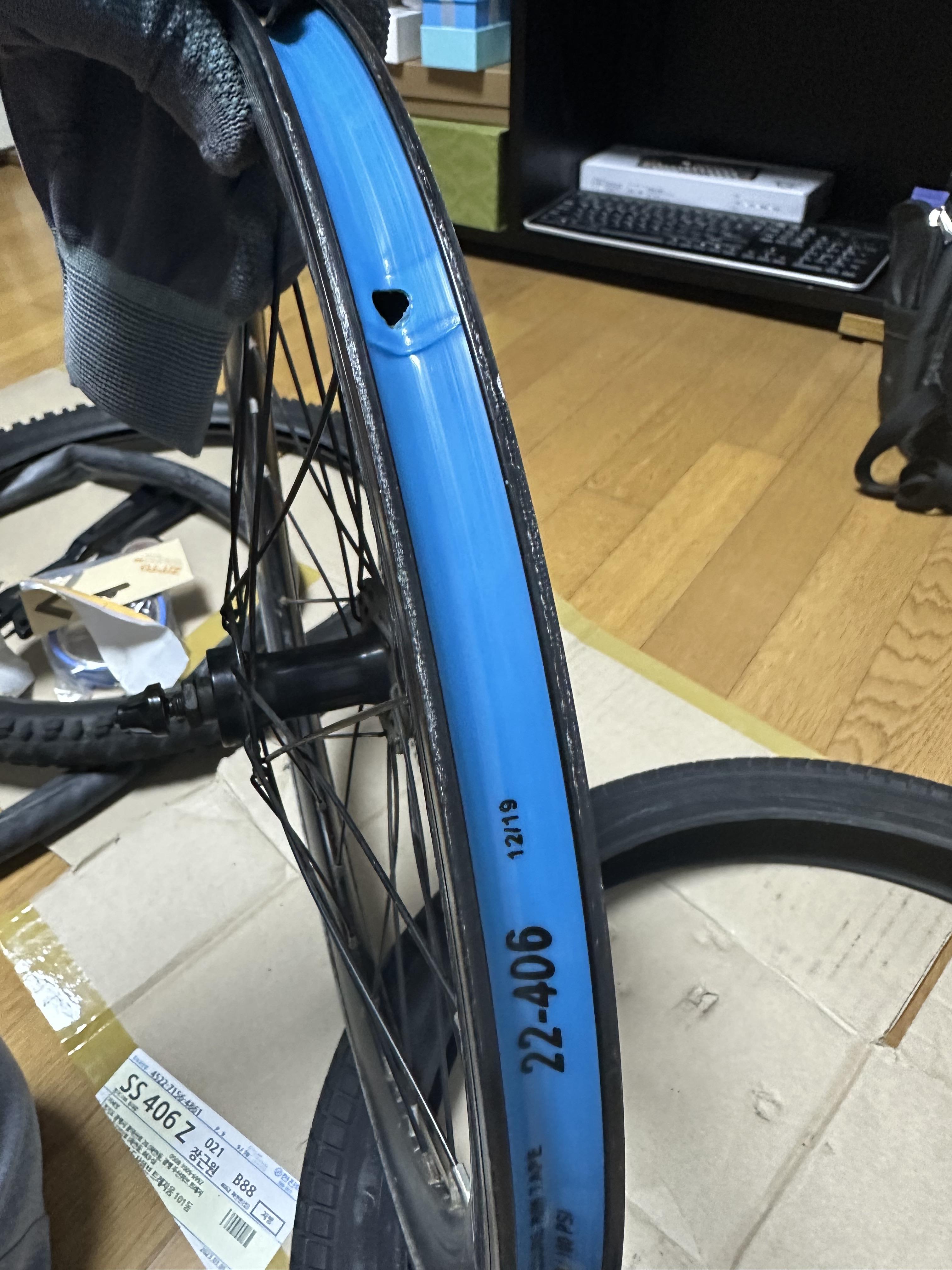 자가 교체시 가급적 노펑크 타이어 보다 일반타이어 추천합니다. 왜냐하면 노펑크 타이어 재질이 매우 뻑뻑해서 교체가 어려움이 있을 수 있기 때문입니다. 실제 노 펑크 타이어를 교체하면서 식겁(?) 한적이 있기 때문에 집에서 쉬엄쉬엄 설렁설렁 하실려면 일반 타이어를 추천드립니다.