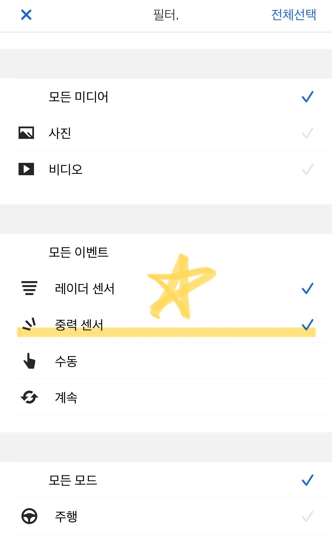 (5) 필터 활용하여 중력센서, 레이다 센서에 잡힌 영상을 확인한다.