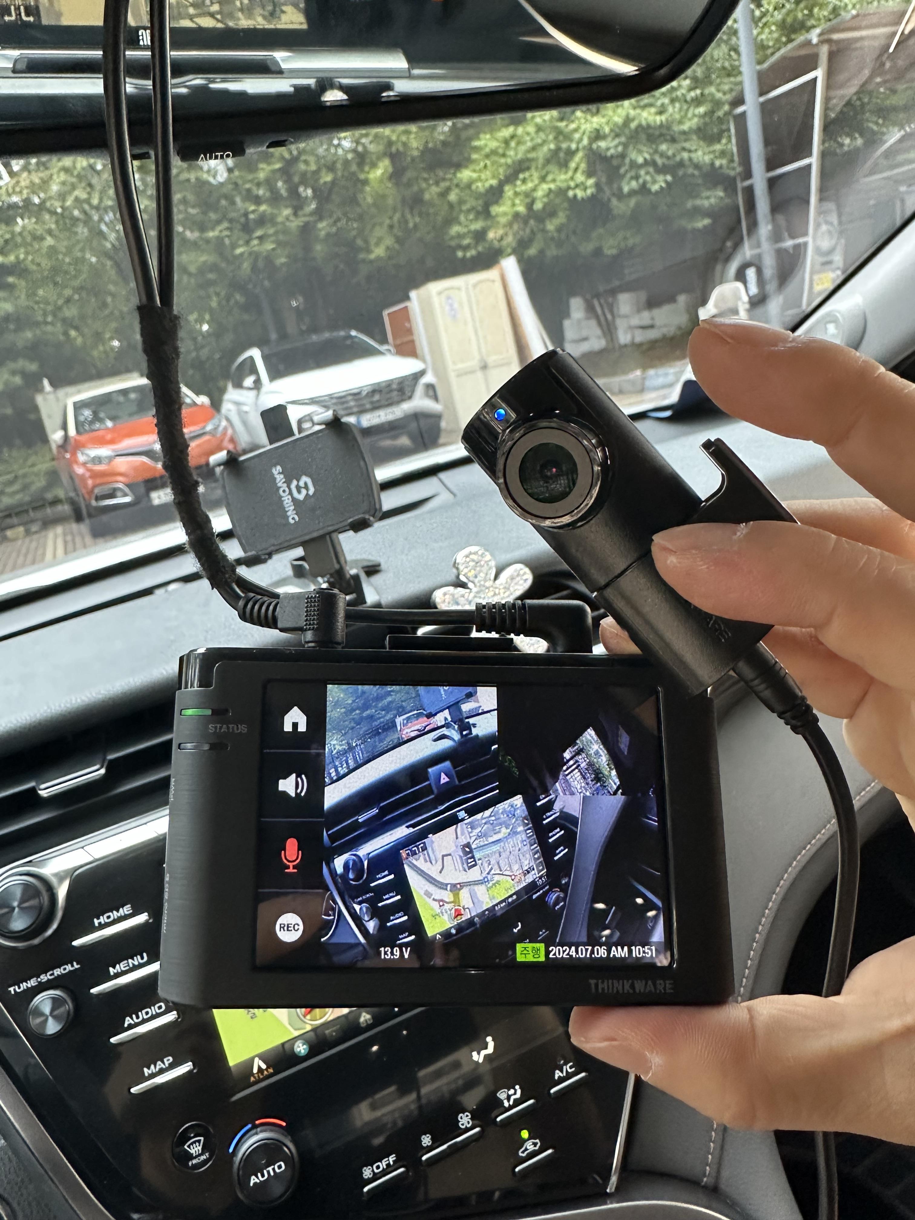 - 백 미러 뒤쪽으로 전방카메라 연결 와이어 정리하는 것