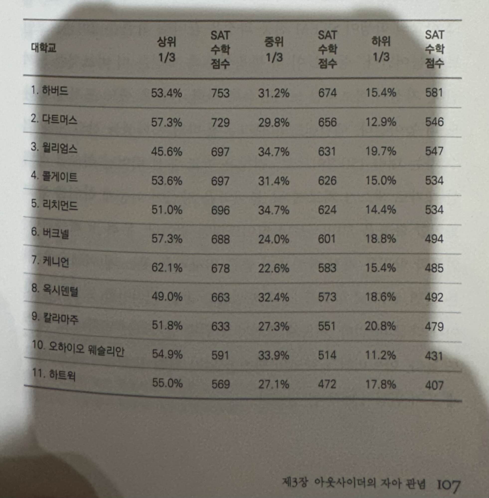 하지만 그녀가 감수해야 할 위험도 있다. 일단 과학 전공에서 완전히 탈락할 확률이 극적으로 증가한다. 그 위험은 얼마나 클까? 캘리포니아 대학교 미첼 창Mitchell Chang의 연구에 따르면 다른 조건이 모두 같을 때 대학교의 SAT 평균 점수가 10점 줄어들 때마다 그 학교의 학생이 STEM 전공 과정을 끝마칠 확률은 2퍼센트포인 트씩 늘어난다. 동료들이 더 똑똑할수록 자신은 더 바보처럼 느껴진다. 자신이 바보처럼 느껴질수록 과학 전공을 중도 포기할 확률도 더 높아진다. 메릴랜드와 브라운에 다니는 학생들 간의 SAT 점수 차는 대략 150점이므로, 괜찮은 학교 대신 뛰어난 학교를 선택한 대가로 색스가 치르게 될 '불이익'은 자신이 이공계 학위를 받고 졸업할 확률을 30퍼센트나 떨어뜨리는 것이다. 무려 30퍼센트나! 인문학 학위를 가진 학생들이 좋은 일자리를 찾는데 어려움을 겪는 반면, STEM 학위를 가진 학생들은 좋은 커리어를 보장받은 것이나 다를 바 없다. 이공계 학위자를 위한 일자리는 넘쳐나고, 보수도 높다. 아이비리그 학교의 명성을 얻기 위해 감수해야 하는 이공계 포기 위험이 매우 큰 셈이다.