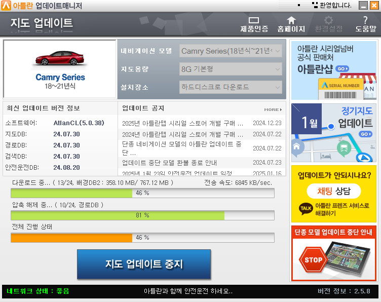 캠리 18년, 2월식 아틀란 네비 업데이트 해봤던 경험으로 절차공유드립니다.