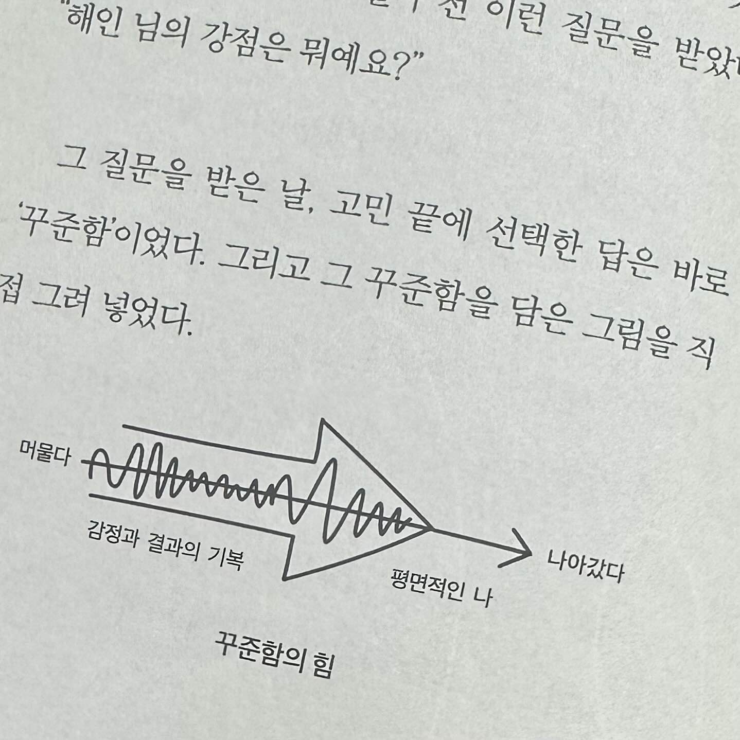 악착같이 버티고 악바리처럼 해내야만 가치 있다 는 지독한 고정관념을 버렸다. 모든 걸 다 해낼 수 있을 것 같은 오기와 오만도 내려놓았다. 지금은 '할 수 있는 만큼, 그러나 꾸준히'하는 것을 선택한다. 성장과 열정이라는 단어를 기대한 누군가에게는 다 소 맥빠지는 이야기일 수 있다. 그러나 솔직히 말하 자면, 무리하지 않는 이 삶이 나를 지탱해 준다. 그 리고 꾸준함을 가능하게 해 준다.