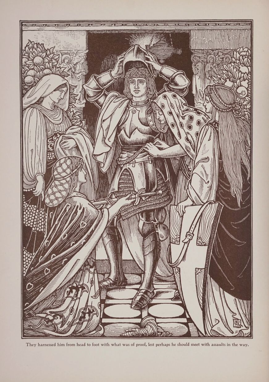 p 109 : 크리스천의 몸을 무장시켜주다. : 고난의 여정이 될 것이므로 아름다운 궁전에서 무장을 하고 나왔다. 앞으로 입는 상처는 크리스천을 더욱 겸손하게 만들고 더욱 기도하고 의존하게 될 것이다.