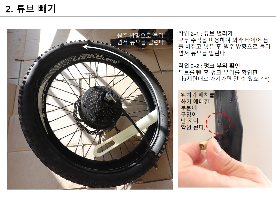 전기자전거 G660 뒷 타이어 펑크가 났습니다.