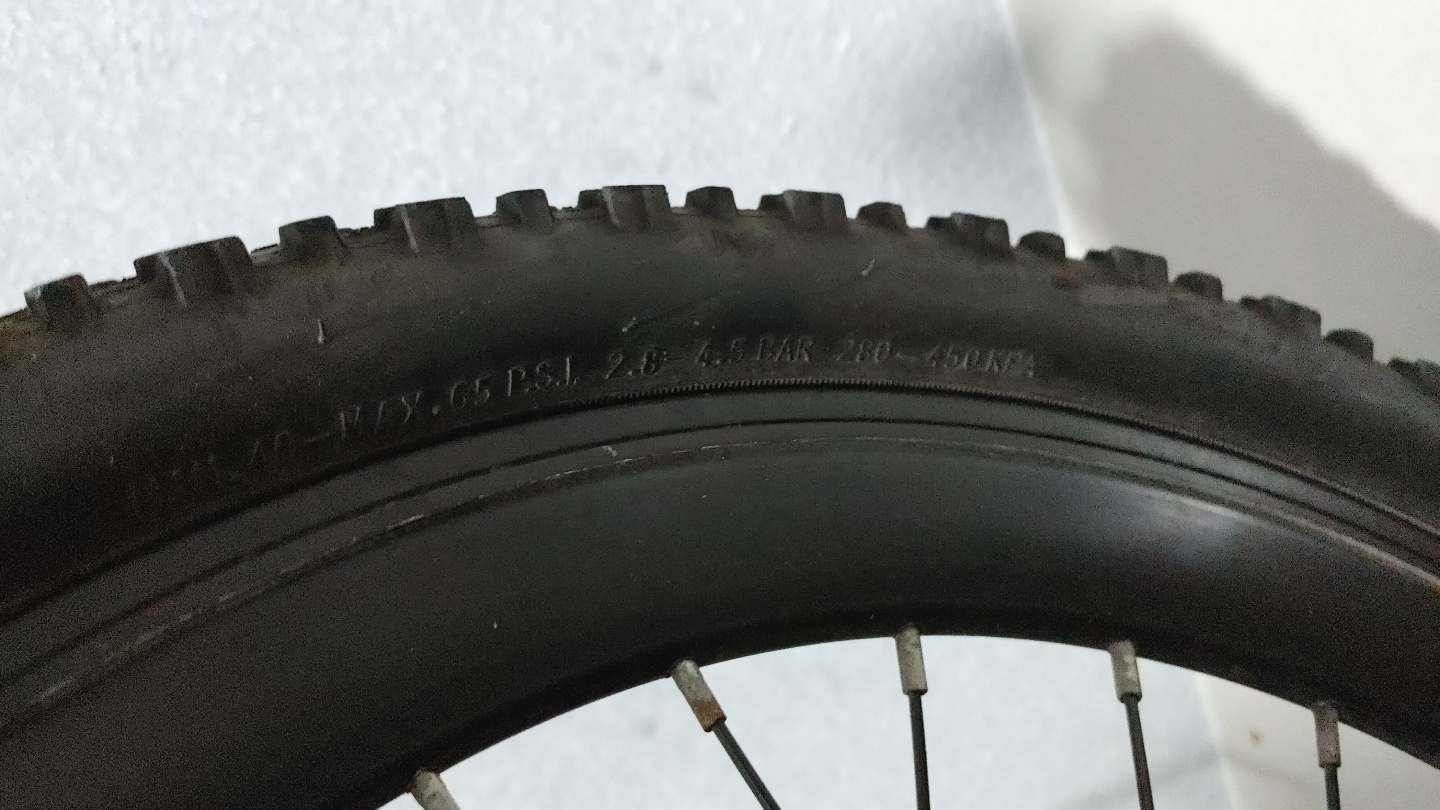 4. 타이어 공기압 : 40~65 psi, 2.8~4.5 bar, 280~450 kPa(앞 바퀴는 좀 더 낮은 압력을 유지)