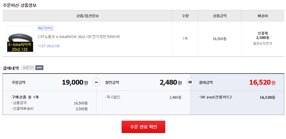 총비용: 노펑크 타이어(16,520) + 펑크 패치 세트(7,300) : 23,820원